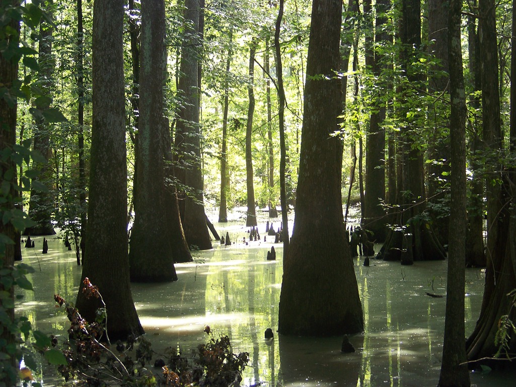 Oozes. Shambling Mounds. Jellies. True monsters that could live in this place and be at the top of the foodchain. An ooze almost invisibly drifting around a great swamp and engulfing prey–crocs and boar and whatnot. Shambling mounds that barely move but lash out and engulf giant birds and snakes out of trees.