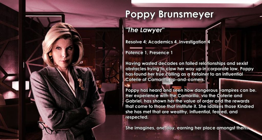The characters go their separate ways having completed some arcs–they become the NPCs of a new game, the Kindred that know each other from “back then” and have petty rivalries and friendships about. Inscrutible history for young vampires that have to cross paths with them.