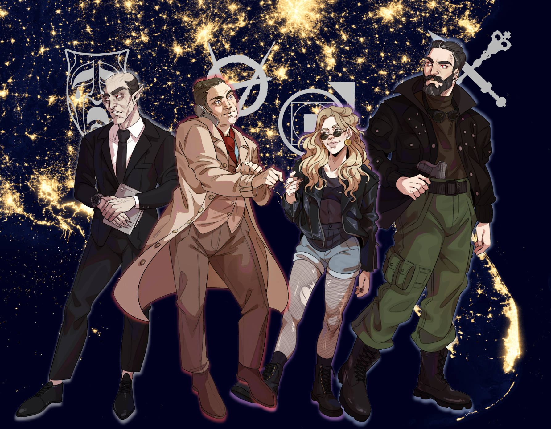 But, first… just some assets. These were, by and large, scraped off of general image searches by various people (I asked for some examples for a personal game and got a deluge from fans of this site). I’d love to credit the original artists as I share more about the game and how it went (just know I’m not excluding that information on purpose). The character art for the Coterie was done by Toni–an artist I’ve worked with on some things before–and I could not more heartily recommend paying her a ton of money to do art for you. Worth every penny. https://www.instagram.com/kumigumii